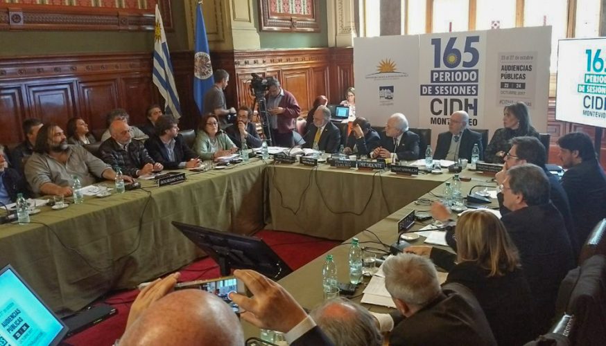 Redacción Canal Abierto | La Comisión Interamericana de Derechos Humanos realiza durante esta semana en el Palacio Legislativo de Uruguay, en Montevideo, las audiencias públicas previstas en el marco del 165° Período de Sesiones del organismo de la OEA, entre ellas dos dedicadas a la Argentina: la de hoy, en la que se analizaron denuncias sobre violaciones a los derechos laborales y sindicales, y otra referida al proceso de memoria, verdad y justicia en materia de crímenes de lesa humanidad.