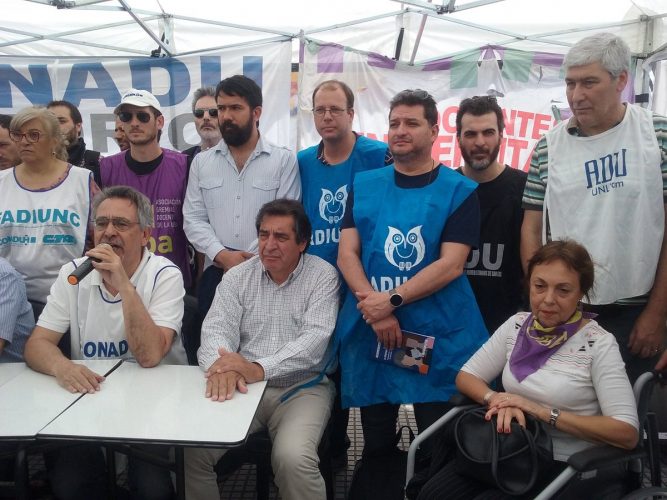 En su primer discurso post electoral, el presidente Mauricio Macri les dedicó un párrafo especial cuando sostuvo que “se requiere el esfuerzo de las universidades para que asignen de forma más eficiente los recursos, para mejorar su desempeño y contribuir entre todos a reducir el gasto público”. Un comunicado conjunto de las organizaciones presentes afirmó en respuesta que los anuncios «son los de una reforma laboral que retrotrae al siglo XIX los contratos de trabajo». También aseguró que “el Plan Maestro y el Sistema Nacional de Trayectos Académicos, así como los operativos Enseñar y Aprender, son los mojones de la reforma antieducativa que implementa el Gobierno. La frutilla del postre fue el ataque directo a las universidades públicas, acusadas de ineficientes y de demandar un enorme gasto público”.