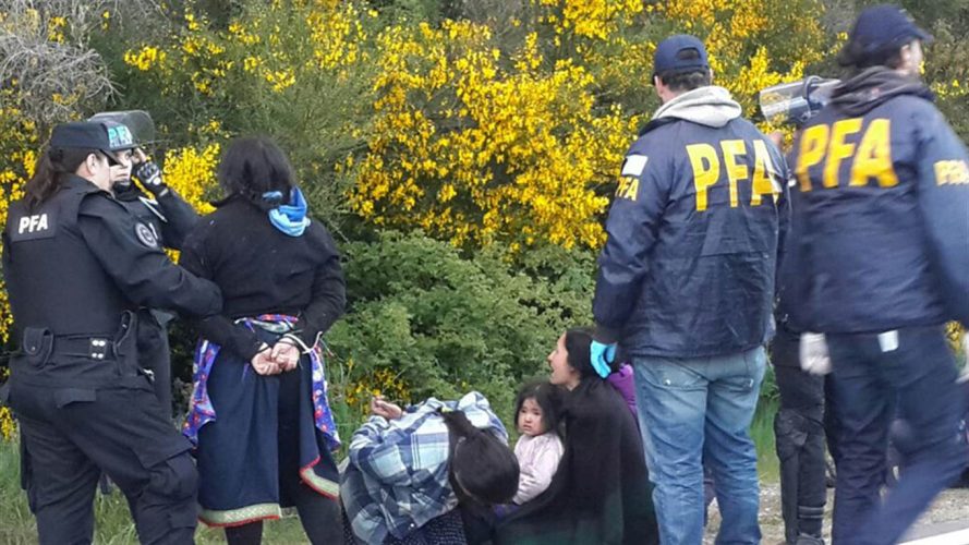 Al momento hay detenidas aproximadamente una decena de mujeres y son retenidos siete menores de edad, que fueron trasladados esta mañana al juzgado federal de la Bariloche, donde se espera una movilización tras su indagatoria.