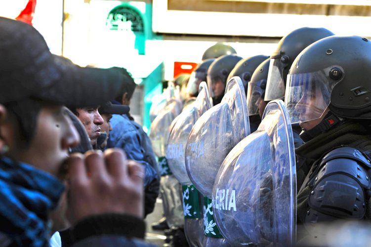Los barcos no navegan, los aviones no vuelan. El setenta por ciento del presupuesto de Defensa va a sueldos. El resguardo de los bienes naturales, que debía ser una de las principales hipótesis de conflicto, no tiene mucho sentido. La Patagonia está manos de latifundistas extranjeros. Gendarmes y prefectos disparan sobre los mapuches y otros pueblos originarios cuya existencia molesta a grandes propietarios y compañías mineras. Las multinacionales son dueñas de aeropuertos, puertos que el Estado no controla. Los policías de la ciudad de Buenos Aires son enviados a entrenarse a Gaza ocupada. Los palestinos no son los RAM, ni nuestros maestros, estudiantes o jóvenes de las villas, pero se le parecen. Guerra de pobres. Piedras contra balas.