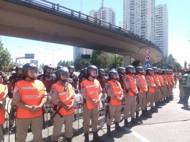 Redacción Canal Abierto| Las columnas que ingresaban a la Ciudad de Buenos Aires por el Puente Pueyrredón para concurrir a la convocatoria de ATE y CTA Autónoma en Avenida de Mayo y 9 de Julio, desde donde marcharán a Plaza de Mayo, se encontraron con un centenar de efectivos de la Policía Federal y de la Prefectura obstaculizando totalmente el acceso.