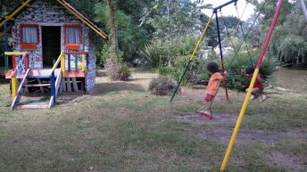 Sandra vive en una casa sencilla que “suele inundarse porque está en terrenos bajos” sobre el arroyo Paycarabí. ”Fácil no es, pero uno se acostumbra. Acá nos gustan los animales y hay que cuidarlos de las crecidas». Mientras, los perros, gallos y patos merodean en el lugar.