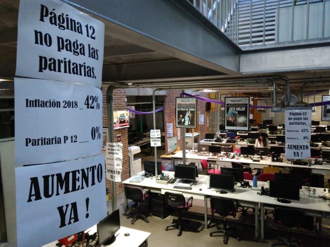“Ponemos el.hombro bancando condiciones de laburo irrisorias: los viáticos escasean casi hasta la ausencia. Casi todas las secciones sufrieron achique: por retiros voluntarios, por jubilaciones. Esos puestos de trabajo no fueron reemplazados”, explicó a través de las redes sociales Ailín Bullentini, redactora del diario, quien agregó: “lectores de P12, sepan q nuestro reclamo es por salarios dignos. Que somos trabajadores, queremos trabajar y poder vivir de nuestro trabajo. La ausencia del P12 en los kioskos hoy es un apriete más que nos estamos bancando de la empresa”.