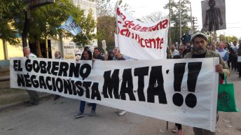 Lejos, en aquella esquina donde se inició la concentración, cuando todavía brillaba el sol, un laburante se acercó con su bicicleta a uno de los manifestantes y le preguntó cuál era el motivo de toda esa gente reunida allí alterando el paisaje habitual. Se interesó particularmente por una bandera que tenía rostros en blanco y negro de periodistas víctimas del terrorismo de Estado y cruzó la calle para ver de cerca las fotos de los trabajadores de prensa desaparecidos.