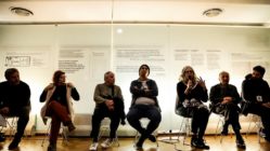Finalmente, en el salón El Dorado, luego de otra puesta visual vinculada a los represores condenados, con la noche afuera, se sumaron para una charla final un psicóloga del centro Ulloa, el espacio de la secretaria de Derechos Humanos para acompañamiento de las víctimas y familiares en los juicios de lesa humanidad; Marcos Weinstein, uno de los Padres de Plaza de Mayo; Carlos Muñoz, otro de los sobrevivientes de la ex Escuela Superior de Mecánica de la Armada, testigo en el juicio a las Juntas y actualmente trabajador del Espacio de Memoria; y Federico Chechele, director del área de prensa de ATE Nacional y director de Canal Abierto, en carácter de cronista invitado para narrar la ocasión.