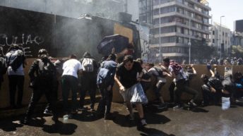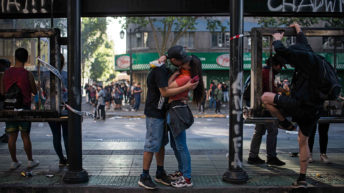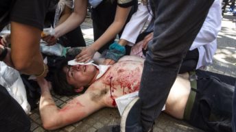 “Yo hermano, lucho por mi futuro y por el presente de mi familia, me demoro una hora y media de mi casa al trabajo y viajo como ganado, no me alcanza para llegar a fin de mes, creo que nunca me van a contratar y realmente no se como me voy a jubilar, esto es una miseria”, comenta un joven que se protege del gas lacrimógeno con una pañoleta de la Central Unitaria de Trabajadores.