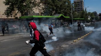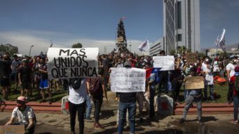 Por Pedro Pablo Ramírez (Migrar Photo) | “¡Oh Chile despertó! ¡Despertó! ¡Despertó! ¡Chile despertó!”, corean miles de personas en Baquedano, en el corazón de la capital. Son jóvenes, principalmente estudiantes y trabajadores, que por primera vez en su vida ven a los militares controlando la ciudad, salen a flor de piel, entre la angustia y la ansiedad, en medio de un río de peatones y bicicletas, a manifestarse en contra de los abusos y el estado de emergencia.
