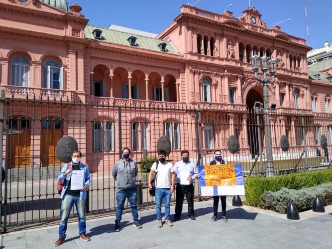 Redacción Canal Abierto | Este mediodía, prestadores del área, personas con discapacidad y sus familiares, organizados en el Colectivo de Discapacidad, presentaron un petitorio en Casa Rosada con una consigna clara: “No al ajuste en discapacidad. Sí a la tarjeta alimentaria para las personas con discapacidad. Sí a los tratamientos 2021. No al 0% de aumento”.