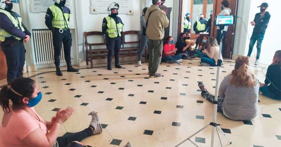 “Las compañeras estaban realizando una sentada en la municipalidad pidiendo que las atienda el intendente. No estaban haciendo ningún desmán y la manifestación era pacífica, pero como no pudieron cerrar la municipalidad la llenaron de policías afuera y adentro por esas trece compañeras”, explicó a Canal Abierto Martín Roldán, miembro de la Mesa de Emergencia de Olavarría.
