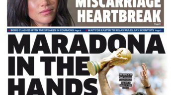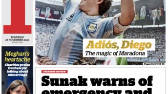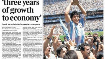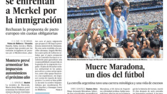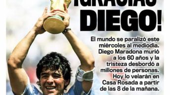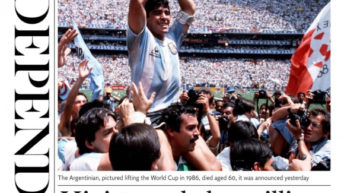 Actualidad “Vi a Maradona” Publicado 26/11/2020 0 minutos para leer Compartir Compartir Liberation, Francia The Times, Reino Unido The Independent, Reino Unido Mundo Deportivo, España L’equipe, Francia The Sun, Reino Unido The Guardian, Reino Unido El Observador, Uruguay AD Sportwereld, Países Bajos The Daily Telegraph, Reino Unido Marca, España Metro, Londres, Reino Unido La Gazzetta dello Sport, Italia El País, España Daily Express, Reino Unido La Opinión Austral, Santa Cruz Página|12, Buenos Aires El Periódico, Barcelona, Cataluña Sport, España Mirror Sport, Reino Unido Corriere dello sport, Italia O Globo, Brasil I, Reino Unido The Herald, Reino Unido The National, Escocia El Mundo, España La Nación, Argentina Folha de São Paulo, Brasil Crónica, Buenos Aires, Argentina
