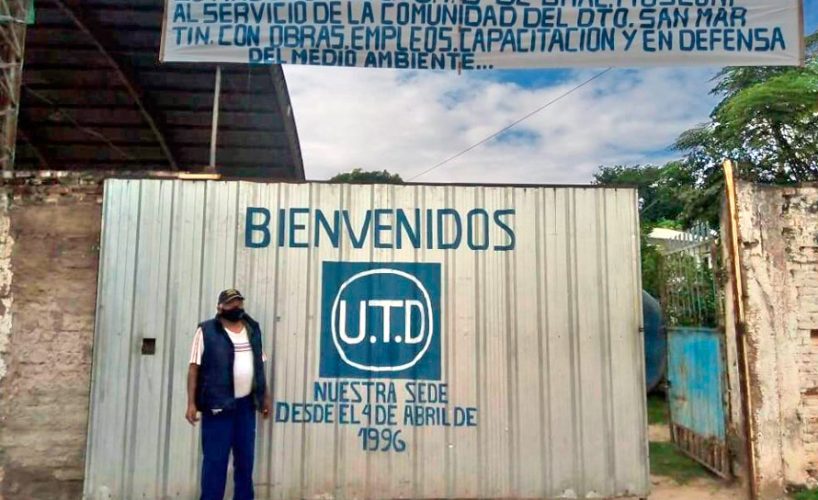Mosconi, a la luz del día, es un retrato vivaz del país descuadernado. Perros pordioseros y vagabundos por toda parte; calles sin árboles; aislados y abúlicos caminantes; comercios vacíos, devorados por gruesas telarañas; escaparates anodinos. Cuesta creer que esta ciudad, una década atrás, estuvo habitada de familias de clase media que recorrían sus calles con placer, al amparo de un limitado pero satisfactorio bienestar que, imaginaban, jamás había de convertirse en desazón y miseria. En el umbral del predio del viejo Club Deportivo Transportes, donde atiende sus asuntos la UTD, nos aguarda Tomás, que continúa con su parsimonioso coqueo. El club es una construcción antigua que ha sido refaccionada; alrededor de una cancha de basquet están distribuídas las oficinas: administración, proyectos, biblioteca, etc.etc. Rodolfo Chiqui Peralta, suerte de secretario de Administración de la UTD, nos recibe en una oficina muy luminosa y pulcra, de paredes blancas recientemente pintadas.