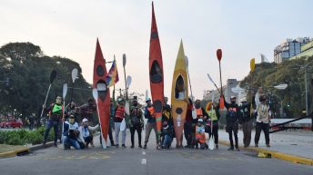 La movilización comenzó a las 16, cuando arribaron a la Ciudad los integrantes de la travesía náutica que recorrieron durante siete días el Paraná en kayaks desde Rosario a Buenos Aires. Ivana Casarotto, una de las participantes, comentó a Canal Abierto: “En el camino veníamos viendo cómo se contamina el Paraná, y fue muy triste porque por partes pudimos ver cómo se va secando desde el norte hacia el sur. Vimos desde residuos cloacales, lo que tiran las industrias, las cerealeras, basurales abiertos en medio de un humedal. De verdad se nota que la naturaleza se está muriendo”.