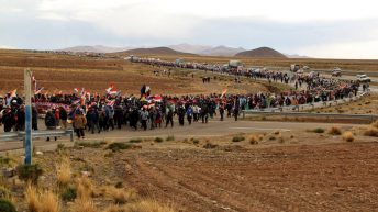 A más de 4.000 metros sobre el nivel del mar con la lluvia acompañándolos, más de 20 mil marchantes atraviesan el altiplano y van sumando voluntades a medida que avanzan. “Tiembla la tierra, tiembla la Pachamama porque este pueblo ha decidido defender y fortalecer esta democracia del pueblo para el pueblo”, concluye.