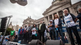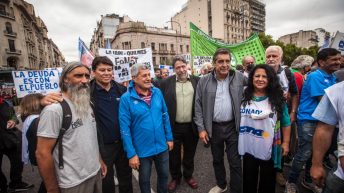 Es ese contexto, los y las dirigentes que hablaron tanto con los medios como arriba del escenario, hicieron hincapié en que buscan recubrir de apoyo al Gobierno para que pueda plantear otra estrategia de discusión con el organismo internacional, como la vía internacional, la denuncia judicial en nuestro país y una consulta popular.