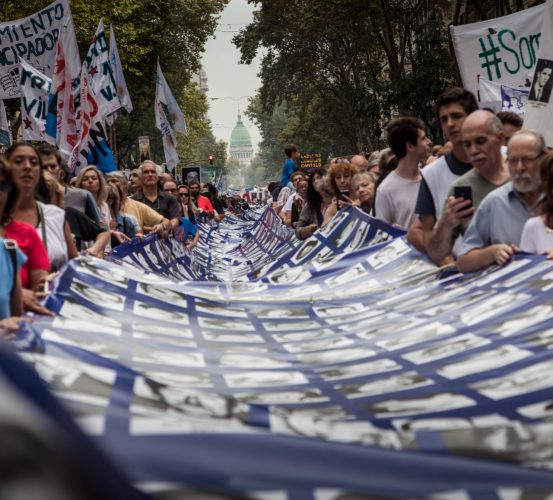 “¿Cuáles fueron las fotos escogidas? Aquellas en las que el rostro se podía visibilizar con claridad, por ejemplo, las fotos carnet que habían sido sacadas para certificaciones oficiales tales como documentos y/o cédulas de identidad. Constituían un recurso para demostrar que aquellos por los que se reclamaba, realmente existían. Su foto era constancia de vida. Las fotografías no solo se utilizaron para denunciar la desaparición de personas ante dependencias estatales sino también para reclamar en espacios públicos. Así puede observarse en la movilización en Plaza de Mayo de 1983, en la emblemática foto de Daniel García”, cuentan desde la organización del evento.