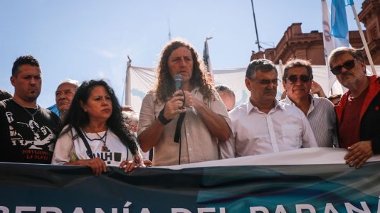 “Hoy hemos construido el inicio de esa unidad, hay acá dos centrales de trabajadores y decenas de organizaciones reclamando que el trabajo de los argentinos y argentinas, que en estos años, pese a la pandemia, pese al desastre que nos dejó el macrismo se va recuperando, toda esa producción se va por el Paraná con cero control, sin pagar impuestos”, agregó.