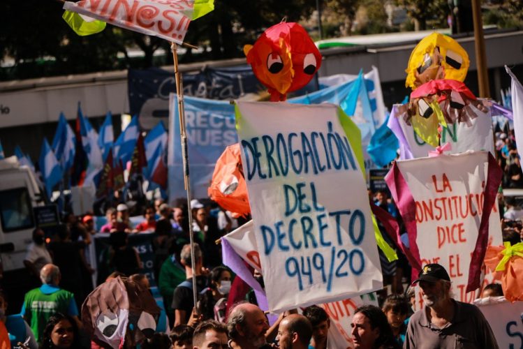 “El decreto 949 fue hecho a pedido de las multinacionales”, señaló Oscar Verón @capveron, de ATE Vías Navegables, durante la marcha por la soberanía, la recuperación de la Hidrovía Paraná-Paraguay y la construcción del Canal Magdalena que se realizó hoy en el centro porteño. pic.twitter.com/I4ChXrql2k