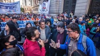 El primer fue Ricardo Peidro, secretario General de la CTA Autónoma: “Se forman comisiones para que no hagan nada, para que se frene cualquier investigación y decimos claramente que para construir esa justicia social tenemos que sacarnos al FMI de encima. No hay ninguna posibilidad de hacerlo si no rechazamos el co-gobierno del Fondo Monetario Internacional. Las consecuencias se verán de acá al año 2023, si no tomamos medidas, le vamos a tender la alfombra roja para que vuelvan al Gobierno. Los compañeros y compañeras acá y en todo el país debemos plantarnos y decir que las estafas no se pagan, tenemos la certeza de que nos vamos asacar al fondo de encima y vamos a construir la sociedad que queremos”.
