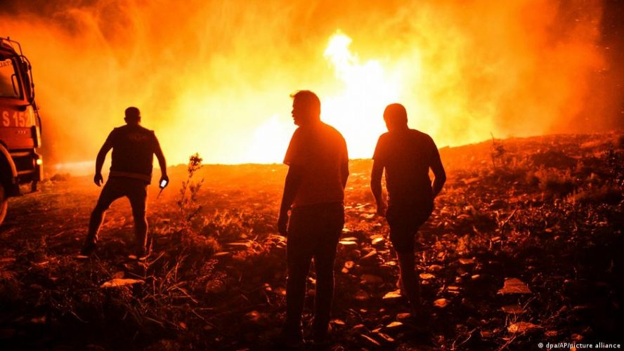 Redacción Canal Abierto | Las temperaturas se han disparado a 47º en Portugal y por encima de los 40º en España, dejando el campo completamente seco y ayudando a la propagación de los incendios. Tanto al sur como al norte de la península, ya son miles los evacuados e aún incalculables las pérdidas materiales (según Madrid, el fuego devastó 70.000 hectáreas desde inicios de año, «casi el doble de la media de la última década»).