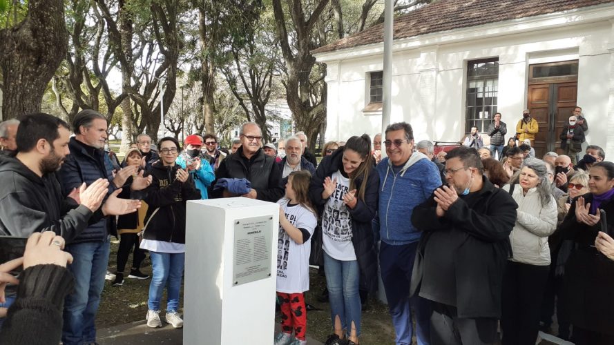 La jornada de hoy comenzó pasadas las 14 horas con el descubrimiento de un monolito con una placa que conmemora los nombres de los 19 presos políticos fusilados en una de las calles de la ex Escuela de Mecánica de la Armada donde funcionó el centro clandestino más grande del país.