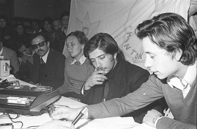 Imagen principal: Los tres sobrevivientes de la Masacre de Trelew ofrecen una conferencia de prensa. De izquierda a derecha, con bigotes y lentes oscuros Ricardo Rene Haidar, Maria Antonia Berger y Alberto Miguel Camps. 5 de agosto de 1973, Trelew. Confitería del Hotel Touring Club. Foto: Emilser Pereira / Diario Jornada. Tomado de Revista HAROLDO.