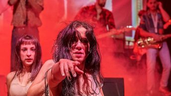 Un cabaret casquivano, performances, audiovisuales y la narración oral se conjugan para que el público, cada vez más nutrido, se interne en un viaje sensorial que permite revivir o, para los que no estuvieron allí, al menos imaginar cómo fueron los primeros shows, cómo fue creciendo el monstruo y cómo se convirtió en esa maquinaria infernal que modificó la cultura argentina para siempre.