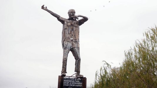 Además, construyeron una la estructura de 100 kilos de chatarra reciclada del Indio Solari en una plaza recuperada de Ramos Mejía, a la que el propio homenajeado saludó en sus redes.