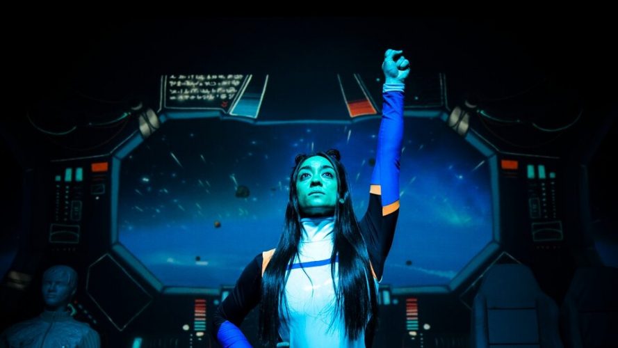 “Fue un desafío llevar una historia de ciencia ficción como esta al teatro, es una suerte de diálogo entre tecnologías y personas”, cuenta Saiz, y agrega: “Definiría la idea como la de un vientre líquido humano-tecnológico en permanente movimiento, un viaje que te desorienta al momento del corte final”