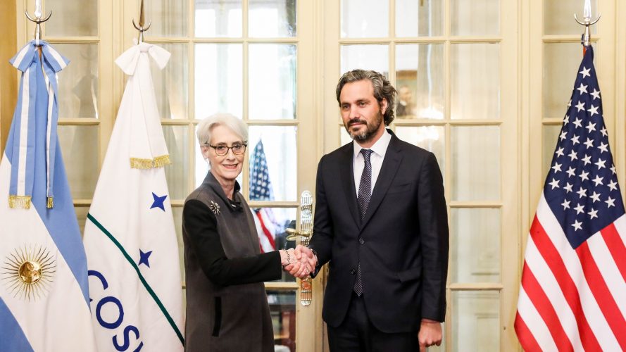 Foto: Wendy Sherman, subsecretaria de Estado de EEUU, con Santiago Cafiero, canciller de Argentina. Abril 2023.