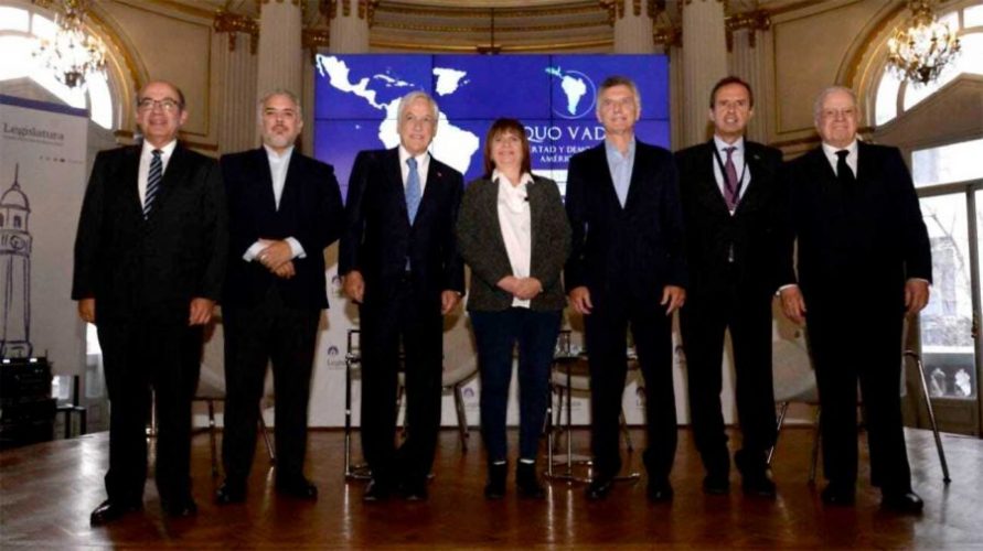 El acto de apertura del evento que se desarrolla entre hoy y mañana en la Legislatura de la Ciudad de Buenos Aires estuvo a cargo de los convocantes del encuentro, los ex presidentes de Argentina y Chile Mauricio Macri y Sebastián Piñera.