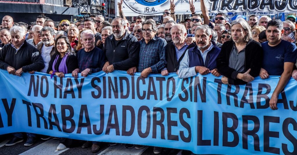 “Venimos a reivindicar los derechos que como clase trabajadora son el sostén fundamental de la patria cuando el gobierno quiere arrasar con la fraternidad y con lo comunitario como pilares de una sociedad mejor. Conmemoramos el 1 de mayo, uno de los días que se conmemora en todo el mundo, menos en Estados Unidos, que son los patrones de Milei, que le pone las condiciones de lo que tiene que hacer en beneficio de ellos y en detrimento nuestro”, dijo Hugo “Cachorro” Godoy, secretario general de la CTA-A.
