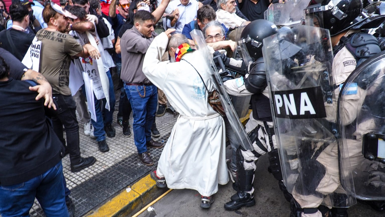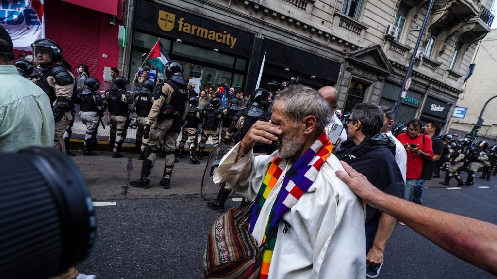 Redacción Canal Abierto | Tal como en ocasiones anteriores lo hicieran hinchas de los clubes de fútbol y organizaciones gremiales, representantes de distintos credos participaron hoy de la movilización de los jubilados al Congreso. Y tal como ocurriera en esas ocasiones, las fuerzas federales al mando de Patricia Bullrich arremetieron sin piedad contra los manifestantes.