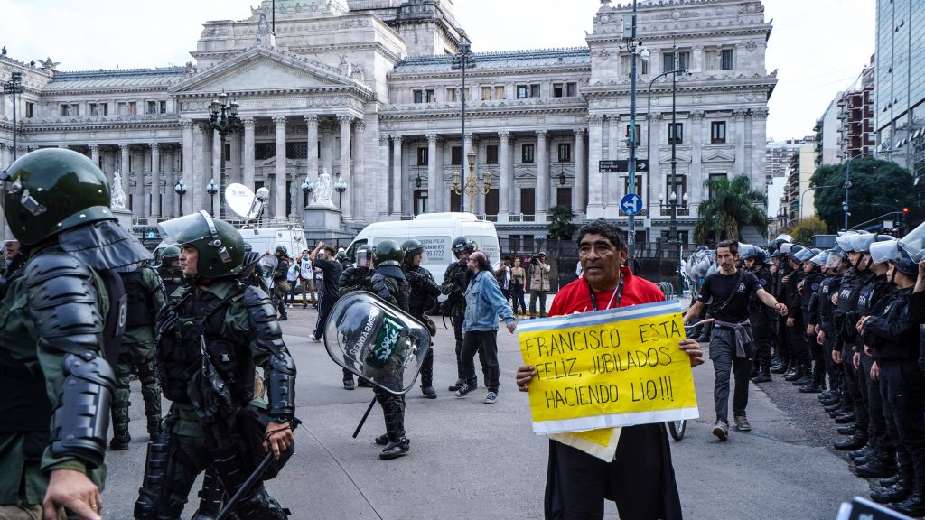 Y advirtió que “el Gobierno, lejos de aceptar el diálogo que lo lleve a enmendar su errónea opción por la codicia y avaricia de quienes son sus mandantes, se obstina en empoderarse como una autocracia de hecho, y en reprimirles brutalmente, también a quienes acompañan y se solidarizan con este sector social, como le ha sucedido al ejemplar fotorreportero Pablo Grillo, gastando en esto los millones de pesos que le quitó a la seguridad social y más aún”.