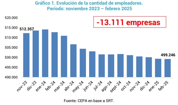 Redacción Canal Abierto | Un informe de la Superintendencia de Riesgos de Trabajo (SRT) confirmó el impacto de la recesión mileista. El dato más significativo, que entre noviembre de 2023 y febrero de 2024 se perdieron 13.111 empleadores: 31 por cada día de gobierno de La Libertad Avanza.