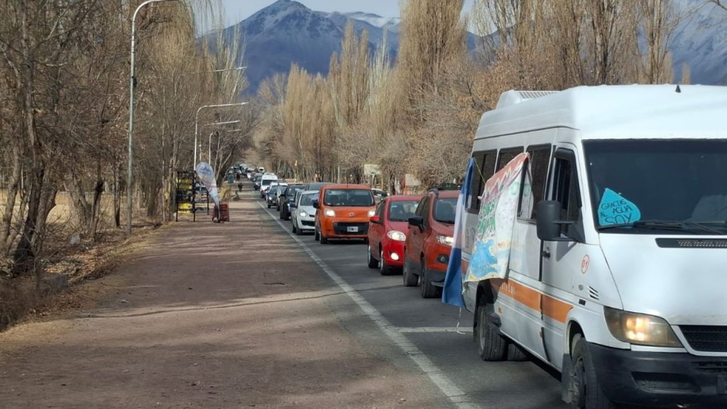 “En este momento hay dos audiencias. La supuestamente pública, que genera el gobierno comprometido con la minera, dentro del predio de la empresa, y que se lleva adelante pese a las muchas acciones judiciales que se hicieron para que fuera en el pueblo y todo fue rechazado, lo cual muestra la connivencia de la Fiscalía de Estado y del Poder Judicial”, explica María Teresa. “Y otra, que decidimos las asambleas, especialmente la gente de Uspallata, que llamamos la audiencia pública del pueblo. Esta se llevó a cabo el pasado domingo 3 de agosto. Se armó un caravanazo desde todos los lugares de nuestra provincia y mediante un escribano público se certificó todo lo que estaba sucediendo”.