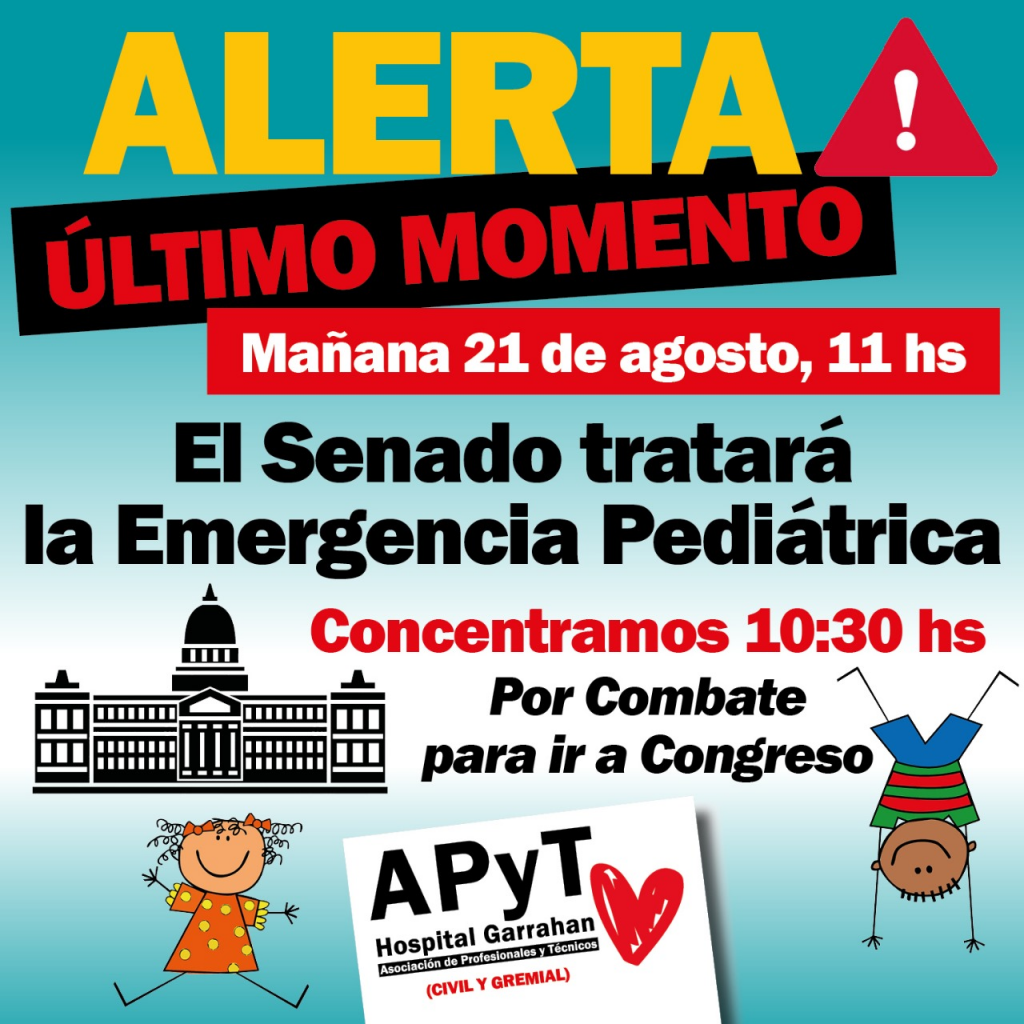 “Si el Senado aprueba la Emergencia Pediátrica y el presidente la decide vetar, va a cometer un error garrafal: tenemos mucho apoyo social y vamos a preparar una respuesta contundente ante semejante atropello. El hospital de los chicos, el Garrahan, no se veta, y el rechazo al veto debe ser causa nacional al igual que lo es hoy el apoyo al hospital”, adelantó al respecto la secretaria general de la Asociación de Profesionales y Técnicos del Hospital Garrahan, licenciada Norma Lezana.