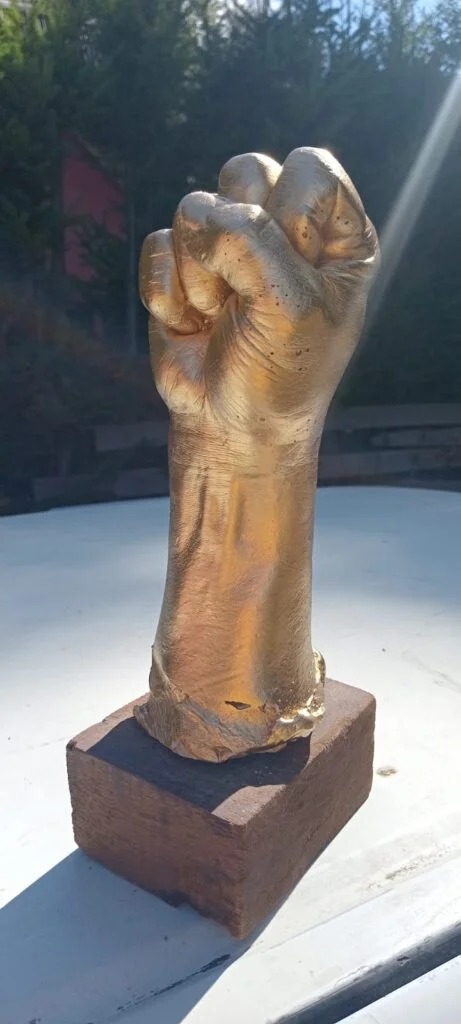 “La iniciativa surgió como una forma de dar ánimo, de hacer volver a las filas a aquellos luchadores que están desanimados. Imagino una entrega de premios muy fashion, con mucha cobertura mediática pero con premiados que no se enterarían ese día sino con anticipación para que puedan preparar el mejor discurso de sus vidas. Y hacer un libro y divulgar esos discursos y que sea una arenga para seguir. De premio te llevás una copia fiel del puño que le pegó a Astiz, con cada arruguita y con cada detalle”, relata Zerneri.
