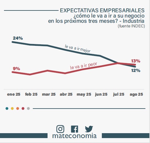 Como consecuencia, “por primera vez el Gobierno se enfrenta a un pesimismo explícito de los empresarios industriales: son más los que creen que estarán peor en los próximos meses que aquellos que creen que estarán mejor”, detalla el estudio.