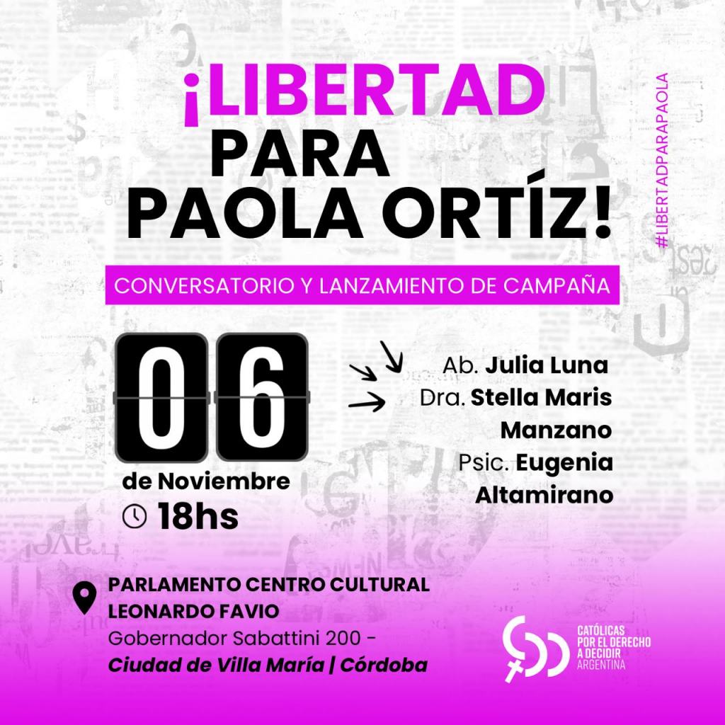 Este jueves, a 13 años de ese hecho, Católicas por el Derecho a Decidir (@cdd.argentina) lanza la campaña “¡Libertad para Paola!”. Será con un conversatorio en el Parlamento Centro Cultural “Leonardo Favio”, en la ciudad de Villa María, provincia de Córdoba. En el panel disertarán la abogada Julia Luna (CDD), la médica y referente feminista, Dra. Stella Maris Manzano, y Eugenia Altamirano, psicóloga.
