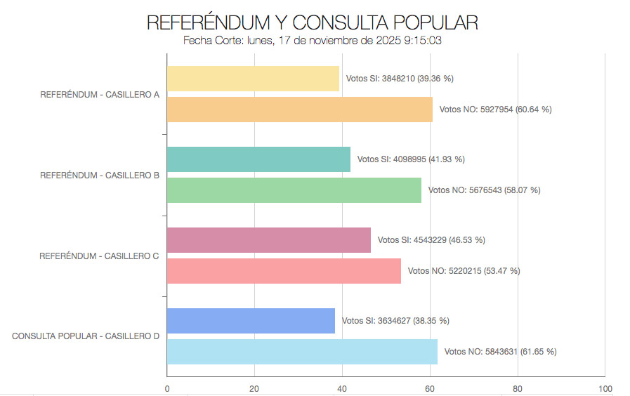 El resultado para esta consulta, la C del referendo, fue de 46,53% para el SI y 53,47% para el NO.