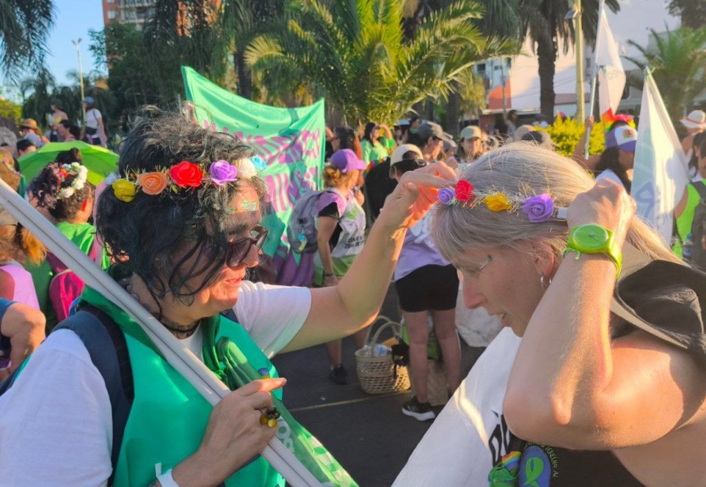 “En este contexto tan cruel, haber logrado el Plurinacional y poder juntarnos ya es un triunfo”, analizaba Mirta, de las Caracolas Feministas de la zona oeste del Conurbano bonaerense, que participa de los Encuentros desde principios de los 90.
