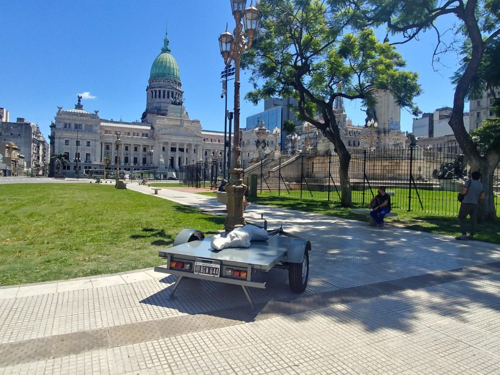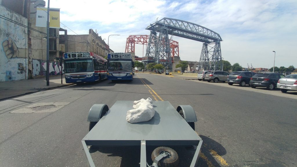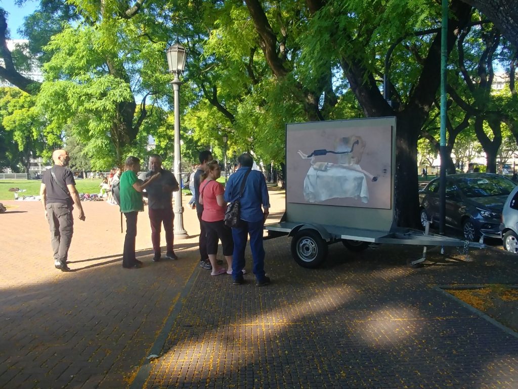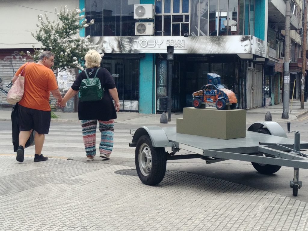 Sacar la obra de arte de los museos genera sorpresa y más si se ve al artista transportándola en un tráiler: “Funciona algo que te deja en la intemperie. Si está en una galería, en un circuito, es como que se le pone un manto de piedad, se lo atempera, se lo tranquiliza. Siento que los museos, las instituciones, se han convertido en casas de tolerancia. Entonces, acá es de pronto algo extraño que se aparece y el tráiler mismo también es una presencia”, agrega el pintor Germán Gárgano.