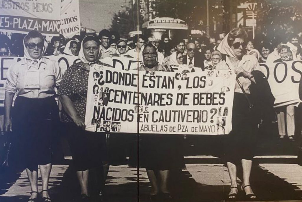 Si bien Abuelas de Plaza de Mayo comenzó a reclamar por los nietos en plena dictadura, inclusive con publicaciones en medios que se preguntaban “¿Dónde están los centenares de bebés nacidos en cautiverio?”, en aquellos años el planteo aparecía en comunicados y pancartas con formulaciones más extensas, que con el retorno democrático se condensaron en la consigna “¿Dónde están los nietos?”, convertida desde entonces en una de las expresiones emblemáticas de la lucha por el derecho a la identidad.