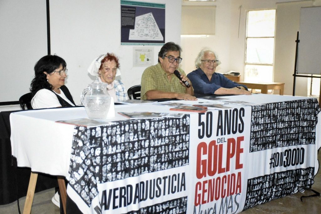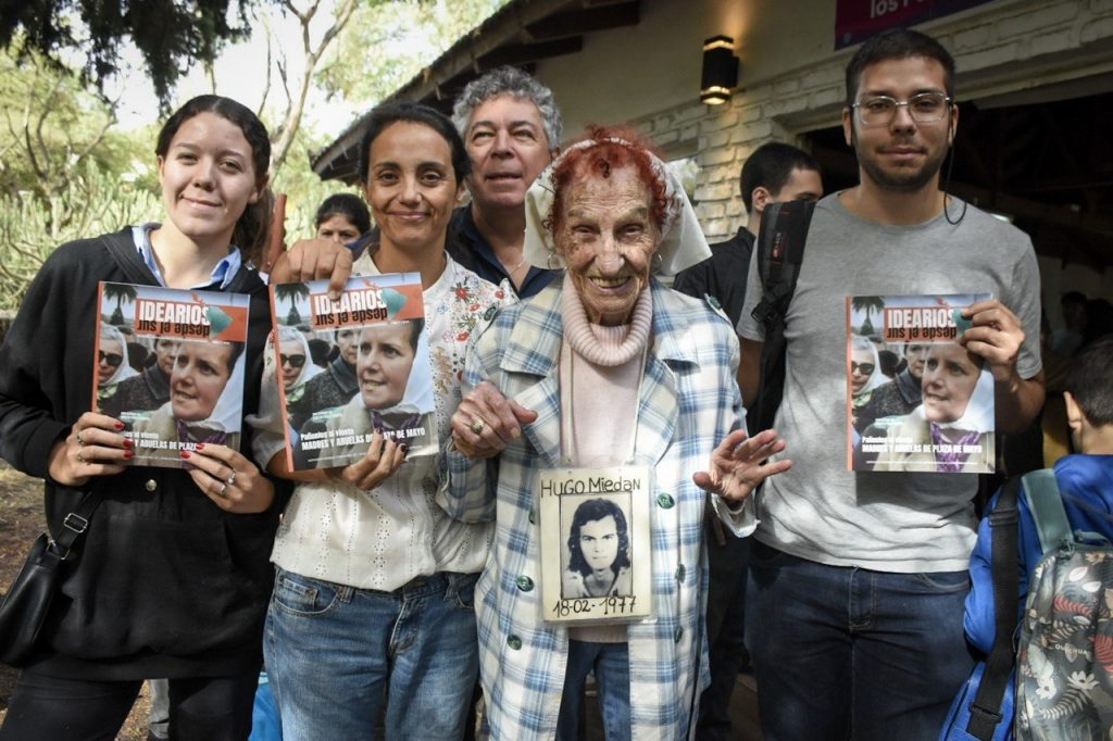“Más allá del dolor que implica transitar estos lugares, si estamos acá movilizados, en las calles, en estos espacios juntos y juntas, estamos bien”, agregó Godoy, ex detenido-desaparecido durante la última dictadura cívico-militar, quien invitó a Ricardo Peidro, dirigente de AAPM (visitadores médicos) y testigo de los juicios de lesa humanidad, a entregarle un reconocimiento al premio Nobel de la Paz, Adolfo Pérez Esquivel, a Elia Espen, de Madres de Plaza de Mayo Línea Fundadora, y a Margarita Noia, hija de otra Madre, “Pepa” Noia.