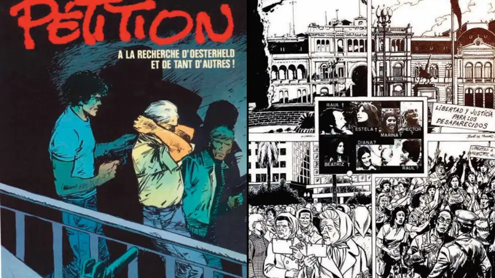 Por Leo Vázquez | En Europa, a mediados de los años ochenta, Amnistía Internacional impulsó un proyecto editorial singular para exigir información sobre el paradero del guionista argentino Héctor Germán Oesterheld, secuestrado durante la última dictadura. El resultado fue Pétition!, un álbum colectivo que combinó historieta, textos de denuncia y una petición para firmar, concebido como parte de una campaña internacional por los desaparecidos.