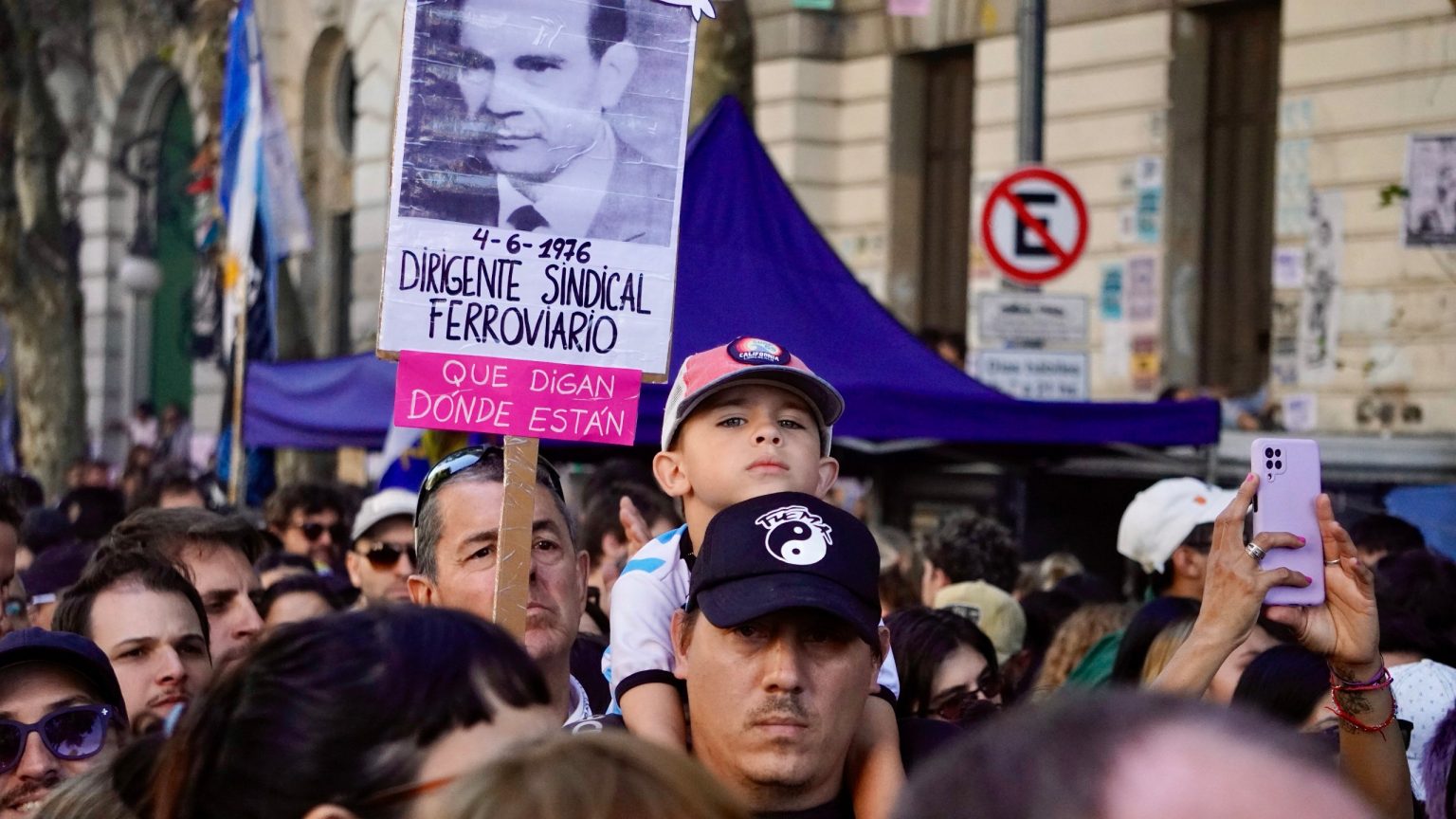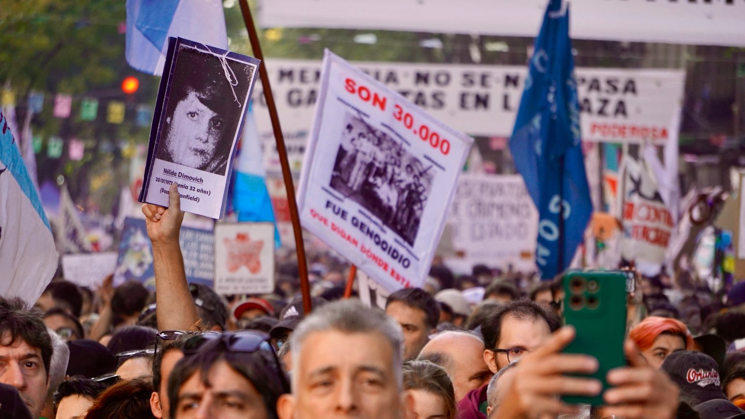 Fotogalerías A 50 años, ¡viva la memoria! Carteles y leyendas, fotos de los que no están en la multitudinaria manifestación del 24 de marzo a medio siglo del comienzo de una dictadura feroz. Las calles se inundaron de alegría y baile. Seguimos cantando. Publicado 27/03/2026 Compartir Listado de imágenes 1/15 Compartir