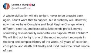 Nota del editor: En las últimas horas de este martes 7 de abril de 2026, Donald Trump volvió a escalar la tensión con un mensaje que combinó tono apocalíptico y amenaza directa. A través de sus redes, lanzó un ultimátum a Irán para que cumpla con sus exigencias antes del plazo fijado, advirtiendo que, de … Sigue leyendo Crónica del conflicto en el Asia Occidental